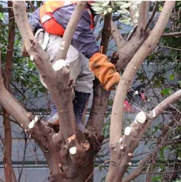- 傾斜地や崖に生えている高木の伐採や剪定